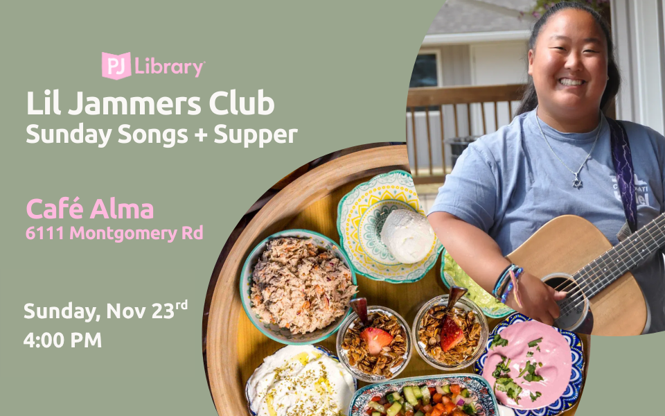 Café Alma 6111 Montgomery Rd, CincinnatiFamilies**🎶 Lil Jammers Club: Sunday Songs + Supper 🎸** **Sunday at 4:00 PM | Free for PJ Library families** You’re invited to join us at Café Alma for a fun-filled afternoon of music, movement, and community connection! Lil Jammers Club kicks off just after 4:00 PM and features a live music Family Jam led by […]