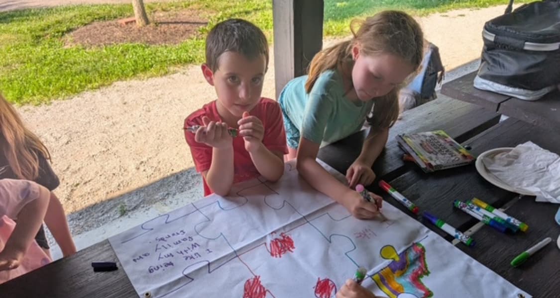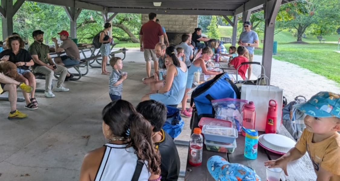 Families are invited to bring their own dinners—anything from a homemade picnic to takeout from a favorite spot. We provide challah and juice for Shabbat blessings, and the rest of the evening is open for relaxing, playing, and building connections with other local families raising Jewish children.